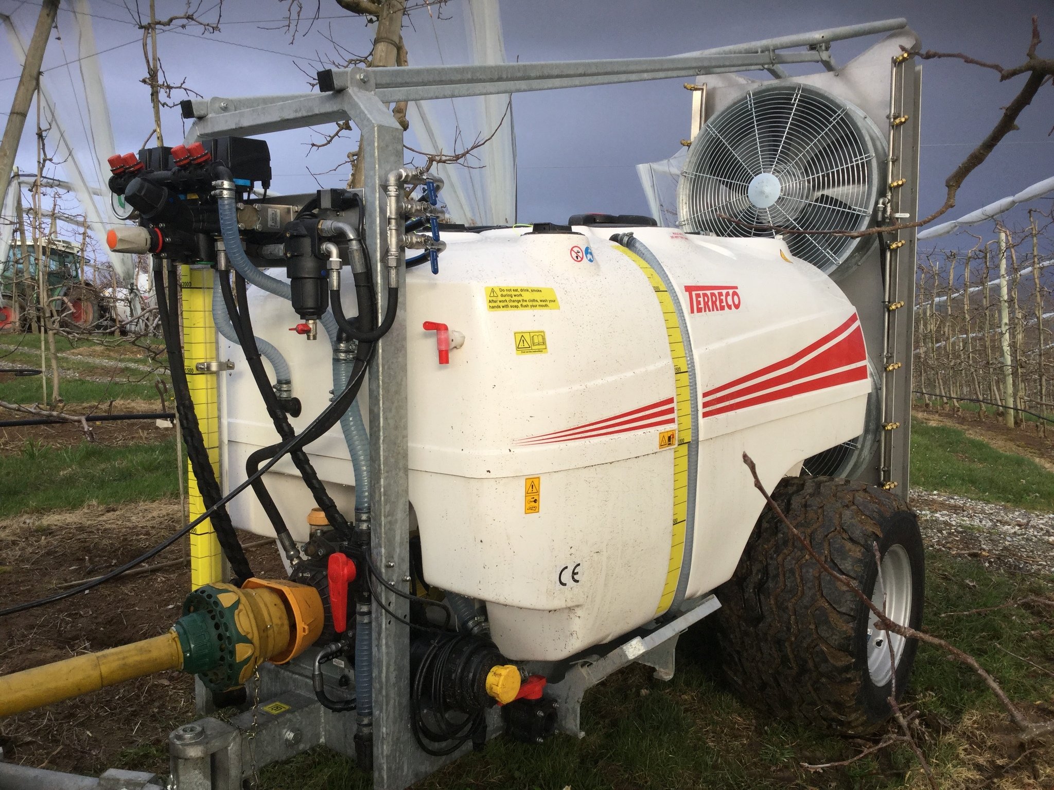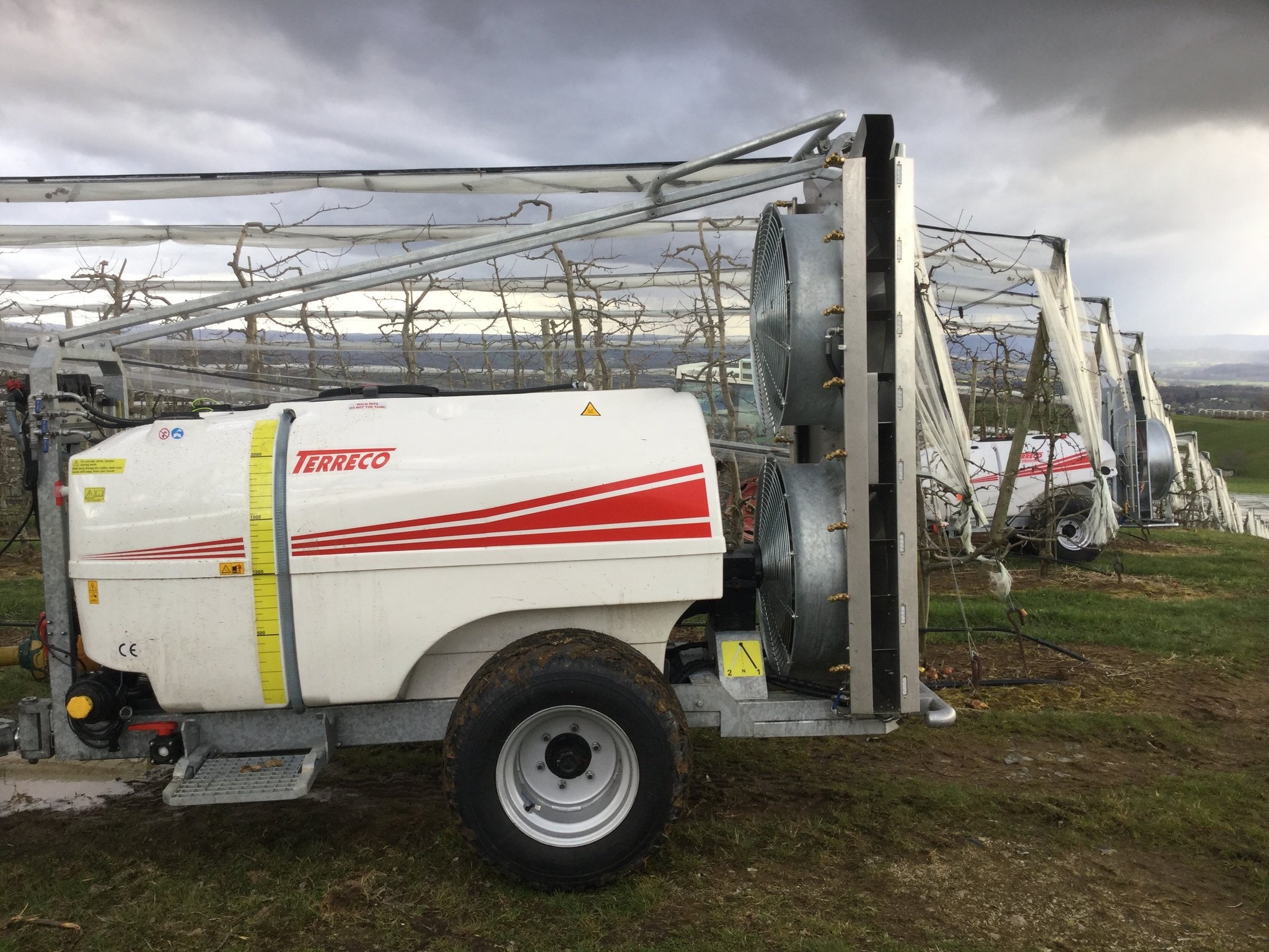 Atomiseur demonstration , cuve 2000 L fibre de verre , pompe 140 L MN , attelage tournant , cuve rinçage , pneus large , deux turbines inversées de 800 mm silencieuses , voute inox hauteur 2 M 50 équipée de 18 jets doubles ( répartition parfaite du produit sans dérive ) cardan grand angle , ouverture, fermeture et réglage de la préssion éléctrique ,puissance nécéssaire 60 CV DEMO POSSIBLE