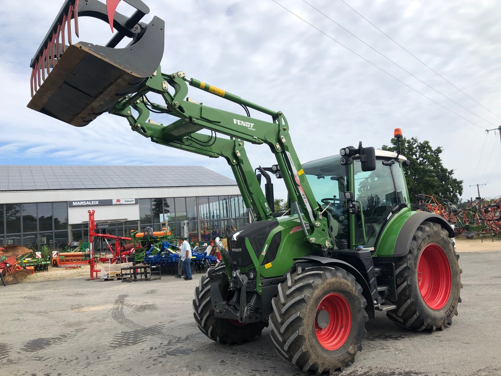 -Chargeur Fendt Cargo 4X75 compact avec 3 ème fonction, boule d'azote, tablier euro, multicoupleur et parallélogramme mécanique. vendu sans le BMS